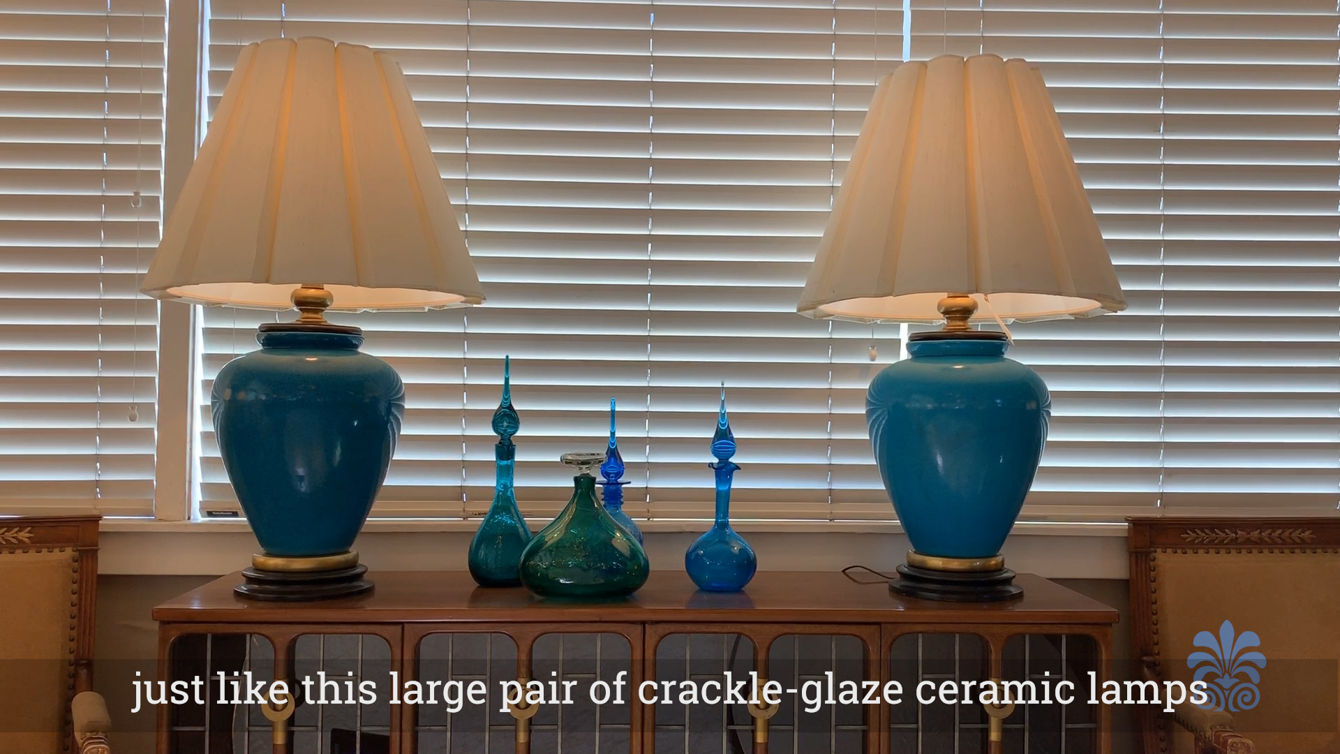 Our Favorites: Striking And Large Pair Of American 1960's Turquoise Crackle-Glaze Ceramic Lamps By Frederick Cooper