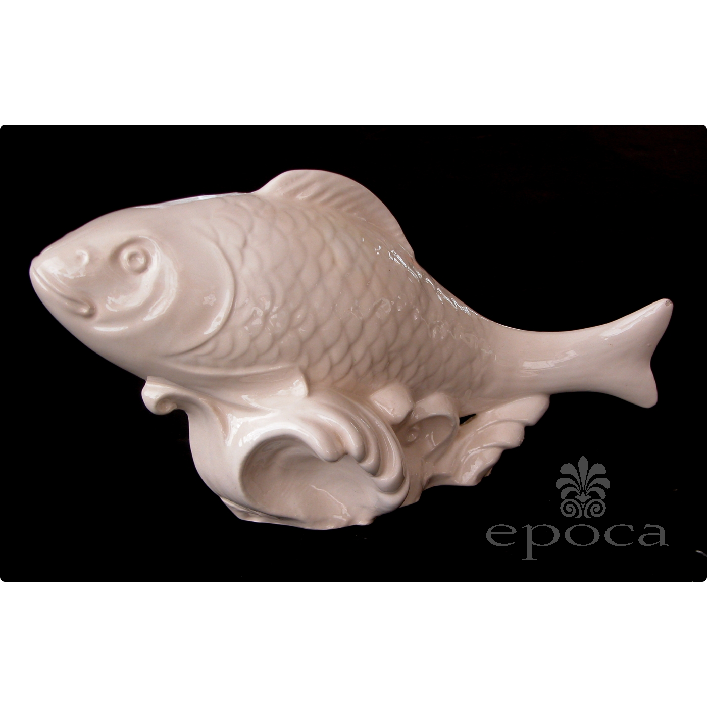 the writhing swimming fish with imbricated scales; resting on a swirling wave; one minor chip to tail.