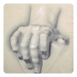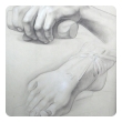each well-rendered artist's study depicting grasping hands and a foreshortened foot; very nicely detailed; unsigned; excellent condition with minor discoloration to paper; new deep brown lacquered wooden frames and fillets with acid-free matting
