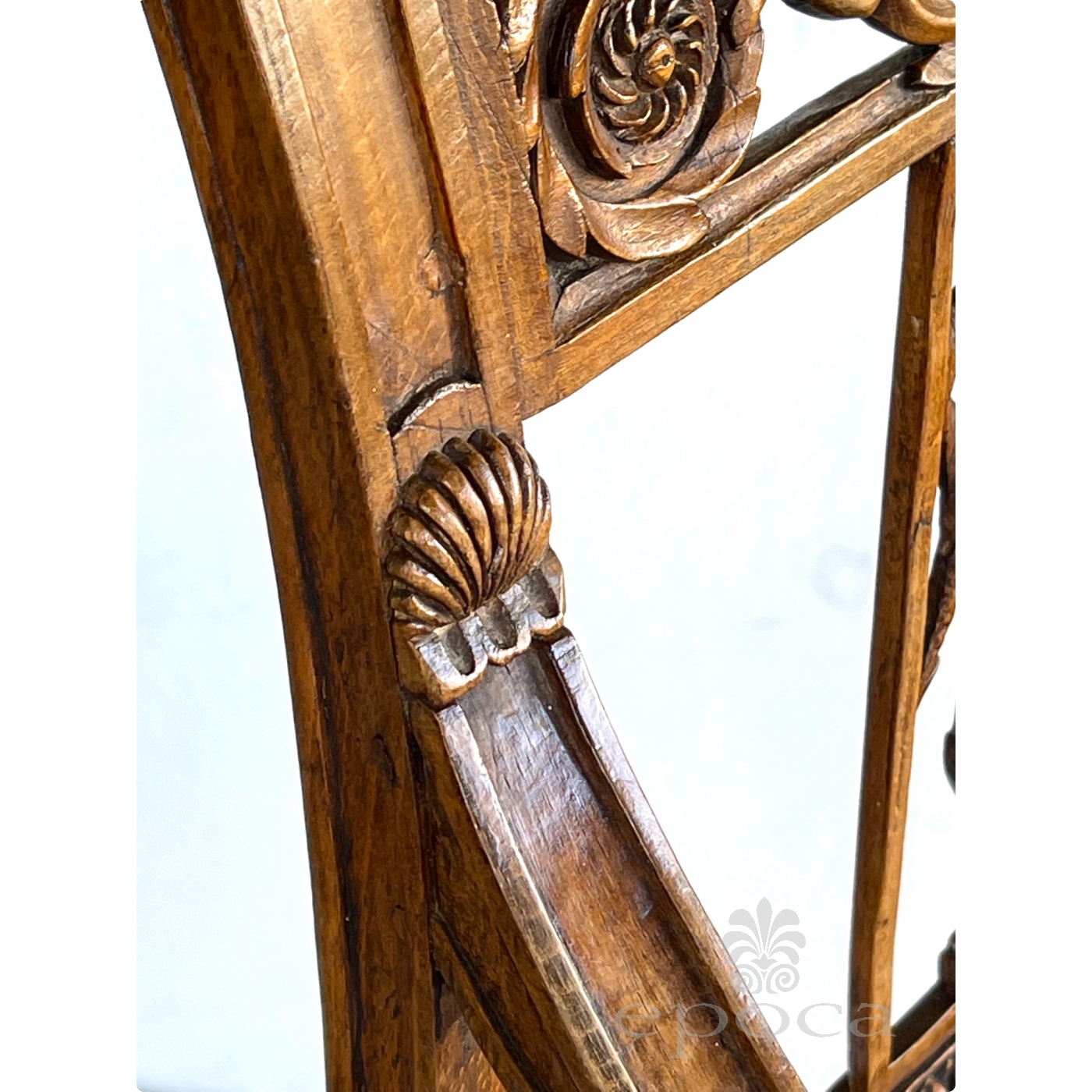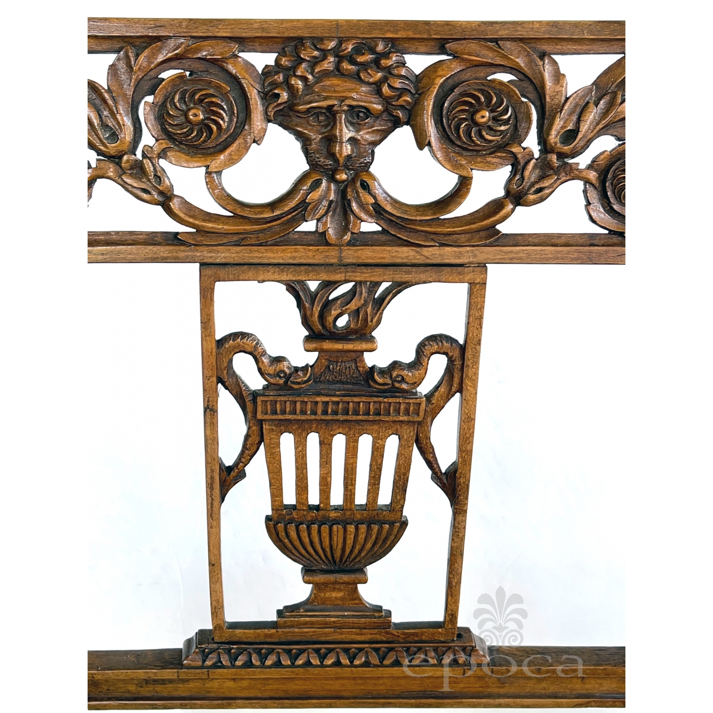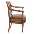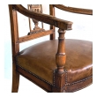 Italian Neoclassical Carved Fruitwood Armchair with Leather Seat