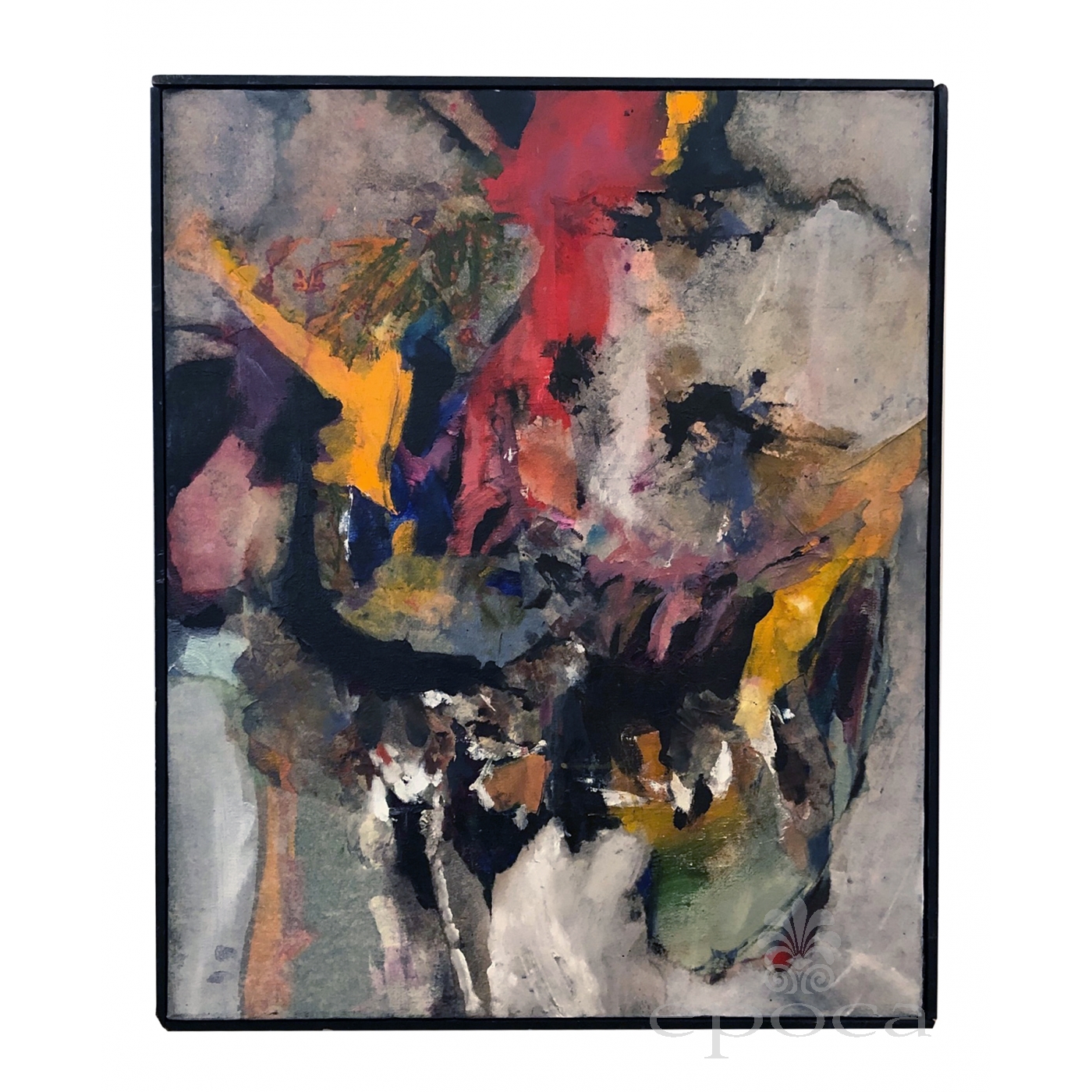 with its thick and bold brush strokes creating a textured surface depicting the artist's emotional energy; signed and dated on verso by Salt Lake City artist 'Ann Gallagher 1972 SLC'; good overall condition with clean surface; wear to ebonized wooden frame