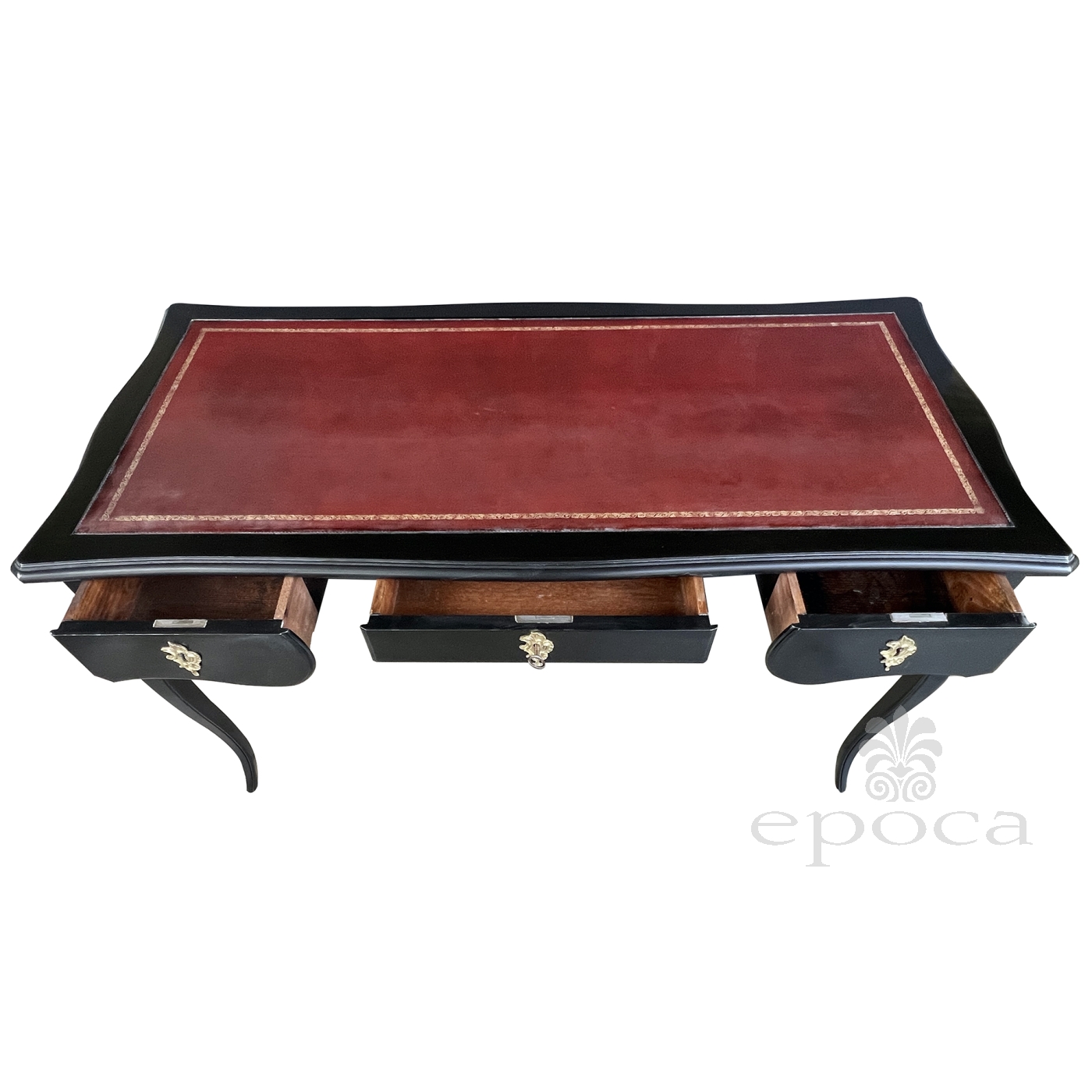 An Elegant French Louis XV Style Ebonized 3-Drawer Writing Desk with Leather Top