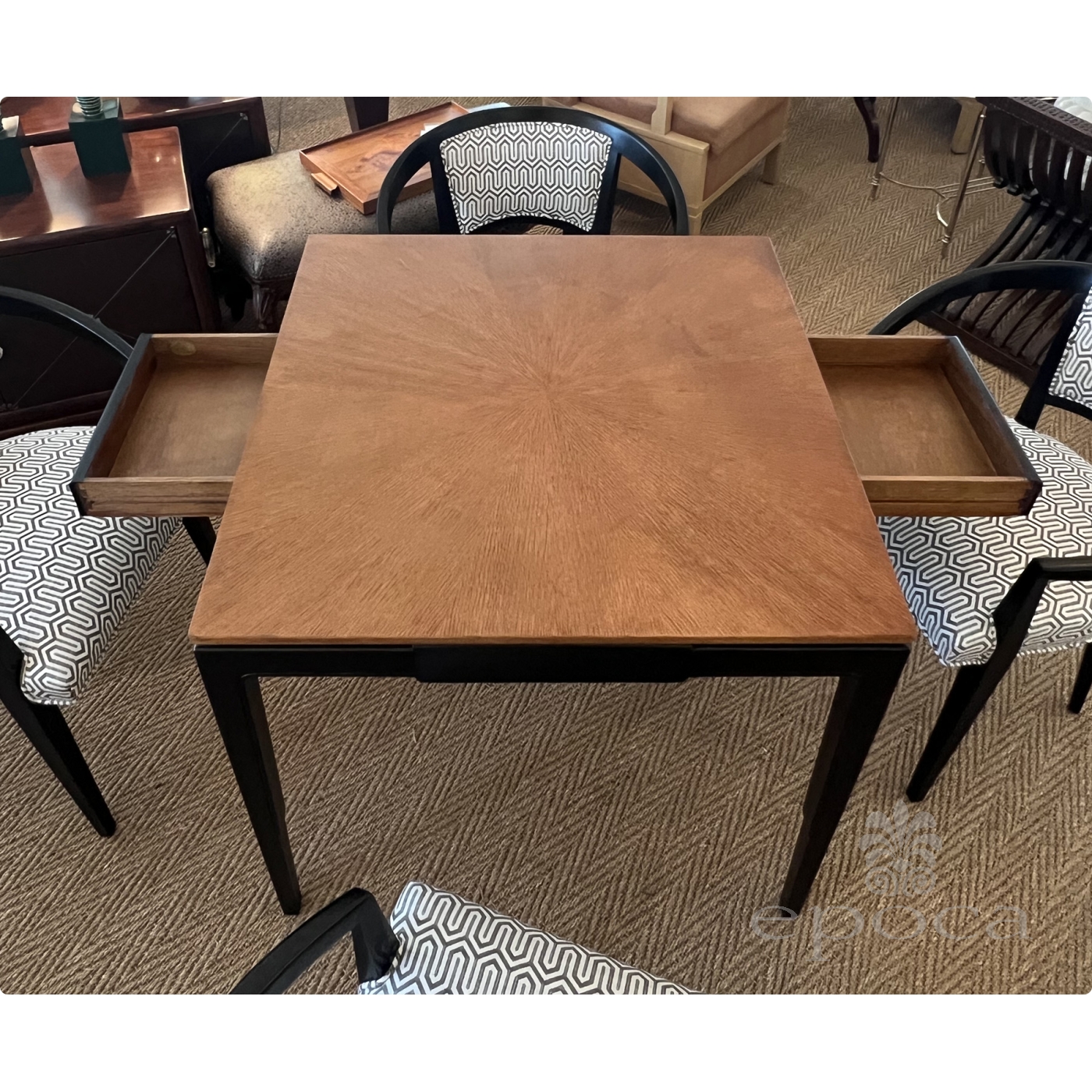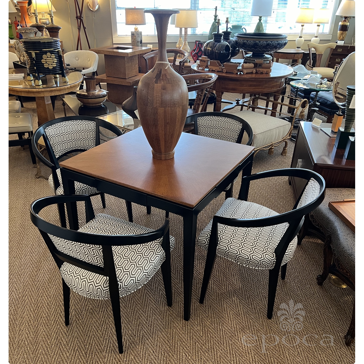 Midcentury Baker Ebonized & Oak Game Table and Four Barrel-back Chairs