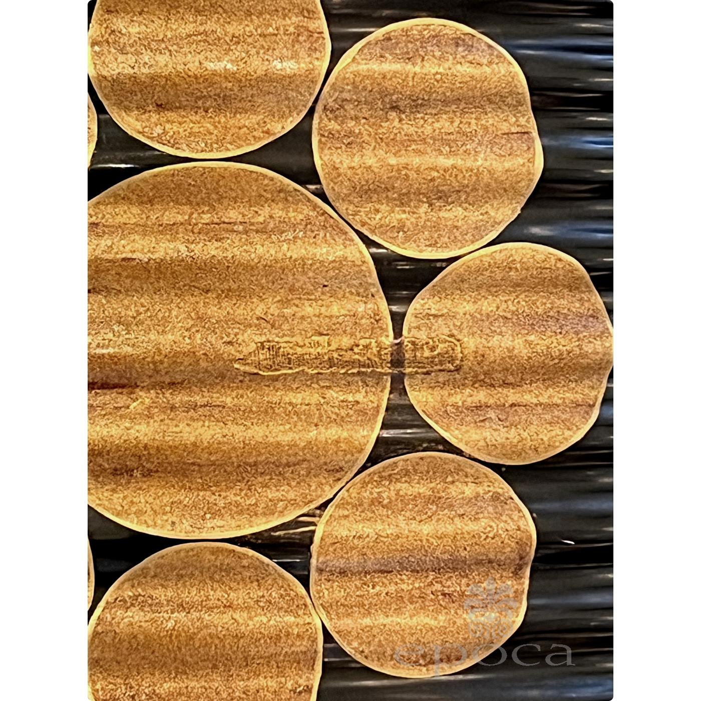 this large ribbed and cylindrical Japanese shell-game box with domed lid decorated overall with Maki-e (gold lacquered) foliate wreaths and stylized flower heads and incised brass mounts; raised on four splayed supports; good overall antique condition with even wear and rubbing to surface; some touch-ups to areas of missing lacquer; minor crack to underside of lid and inside bottom; now lacking rope.