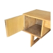 A stunning ash desk designed by Paul László for Brown Saltman c.1950s ,USA as part of the "Basket Weave" collection; this classic California Modern design features two cabinet doors flanking the kneehole; one door opens to reveal an open shelf while the other provides three sliding drawers. It also has a center drawer with dividers for desk accessories and such. This piece can also be used as a console table. Stamped - Brown Saltman Co - South Gate, California; good vintage condition with professionally refinished surface
