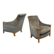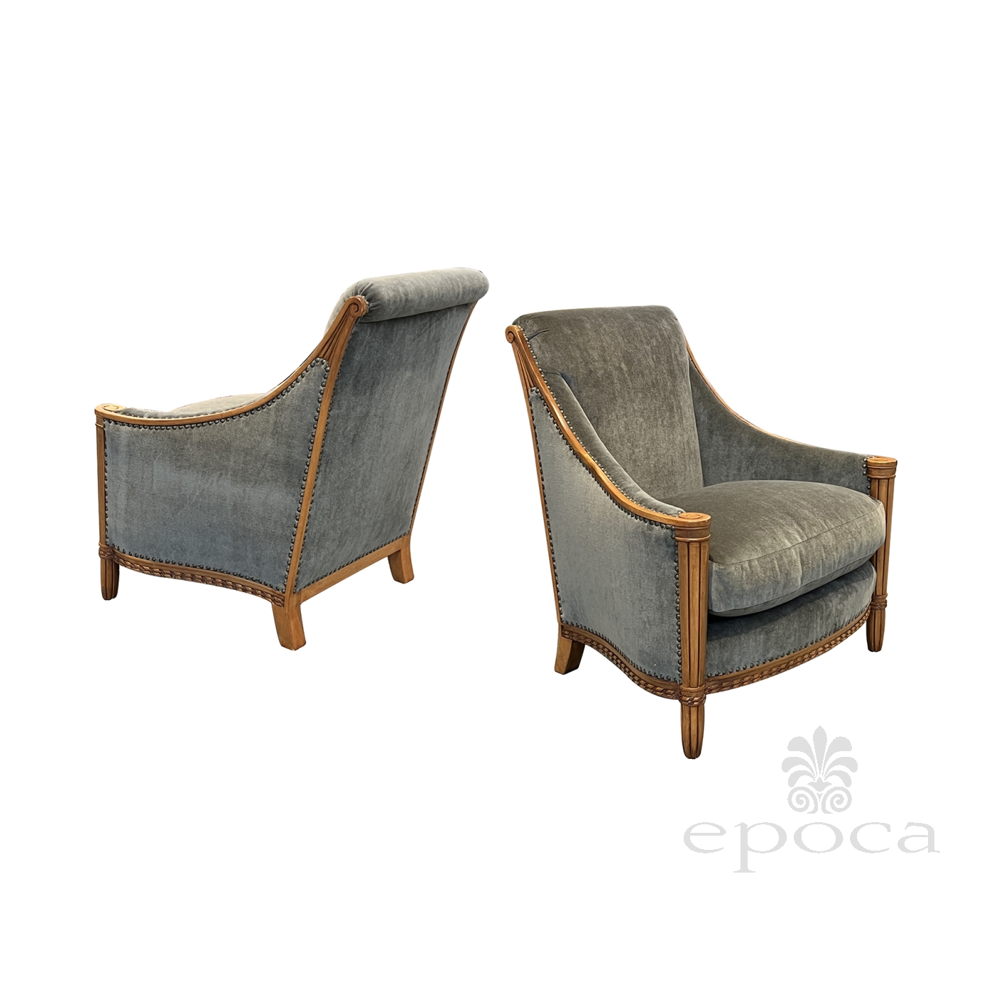 Pair of French Art Deco Carved Maple Upholstered Armchairs/Bergeres