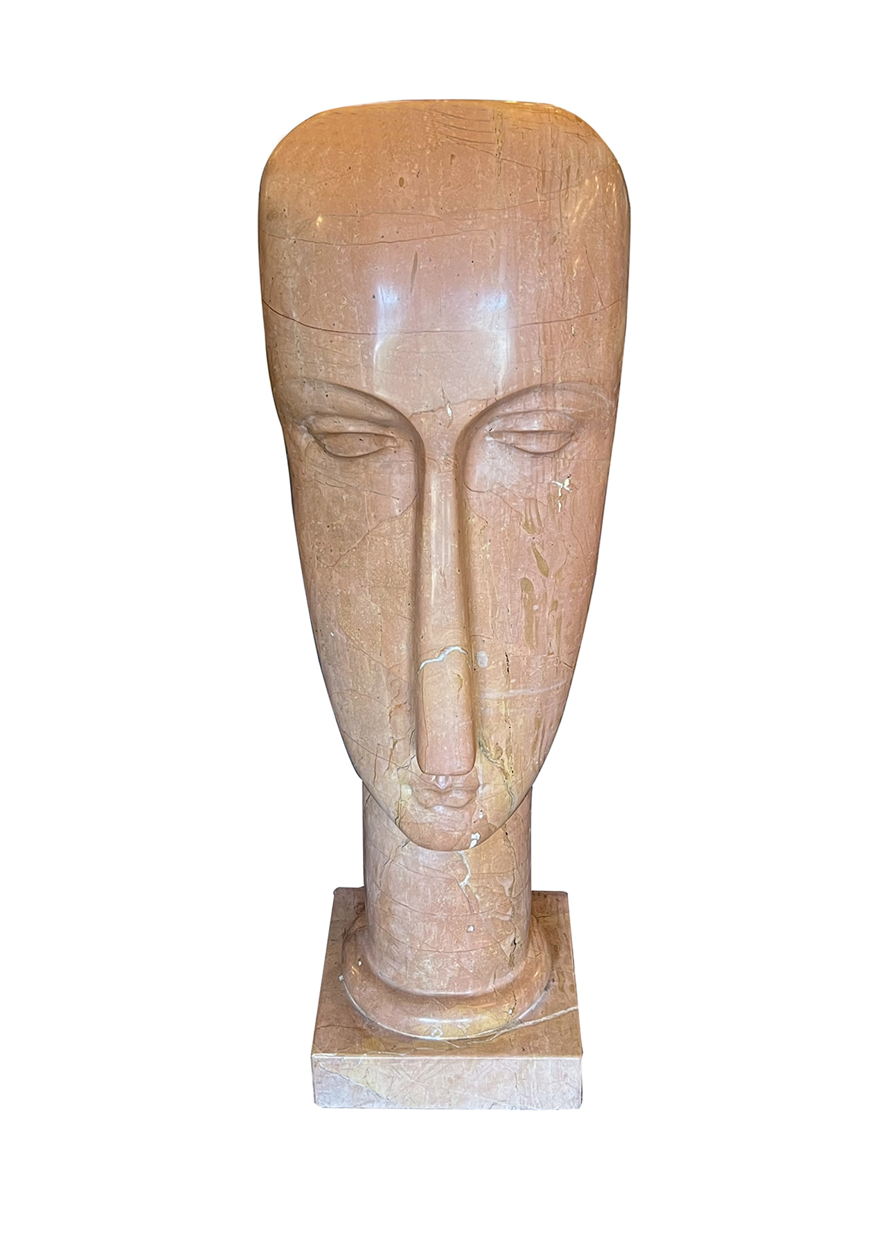 Modigliani-inspired Abstract Head Sculpture in Rosso Alicante Marble