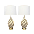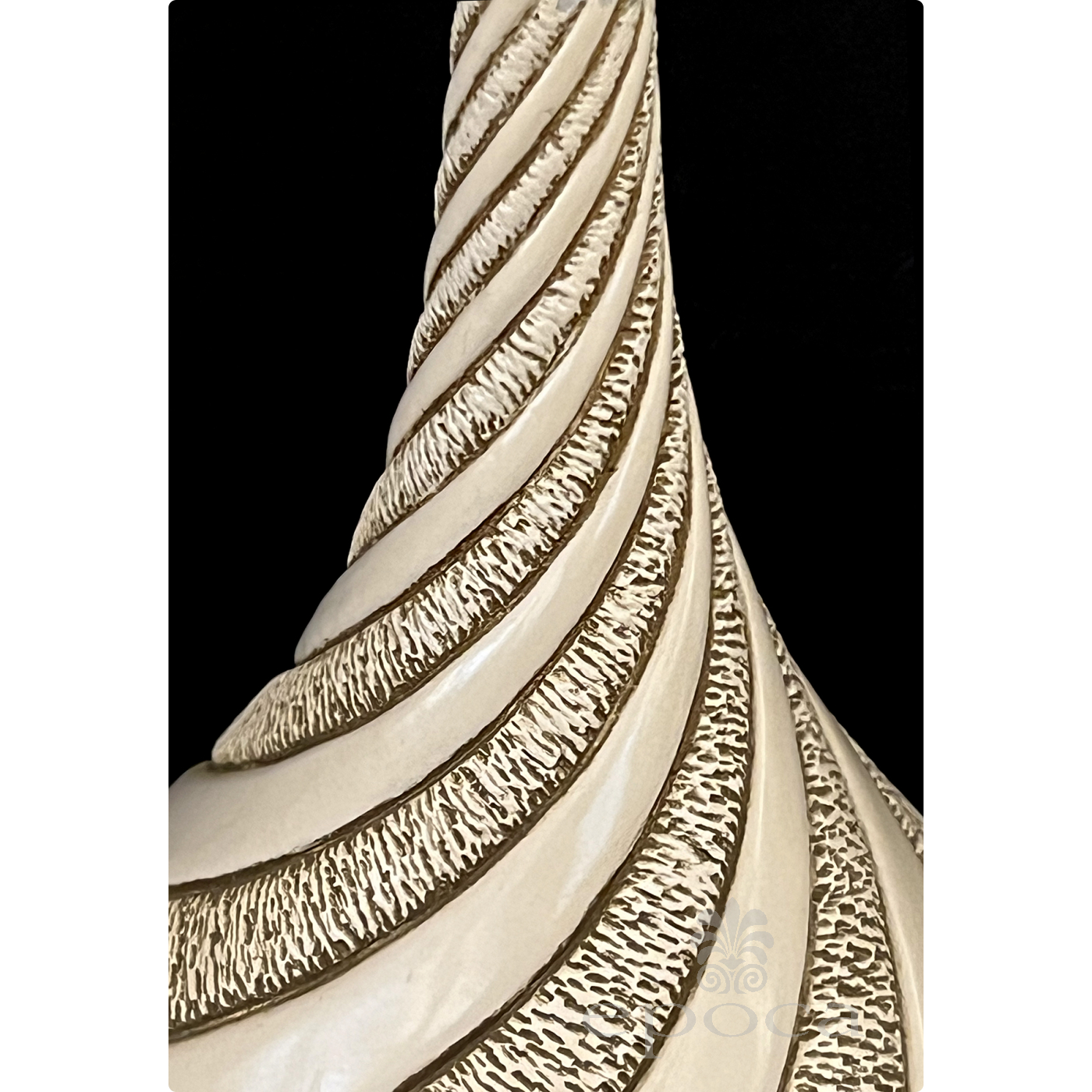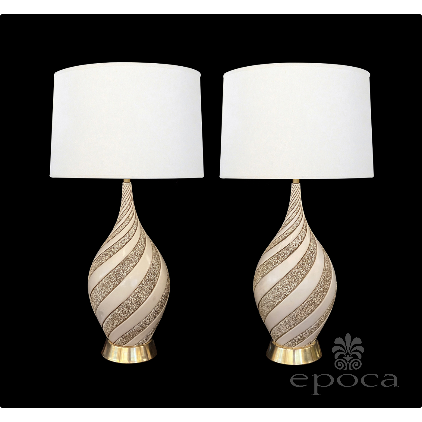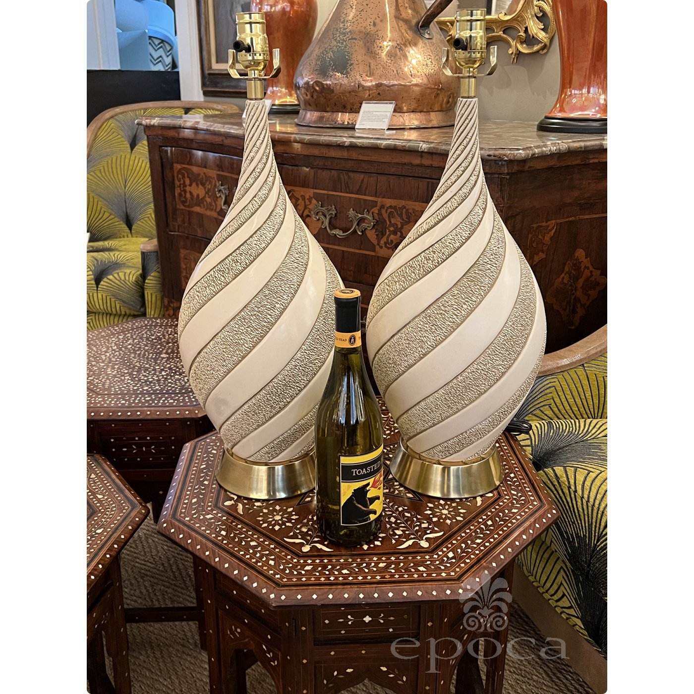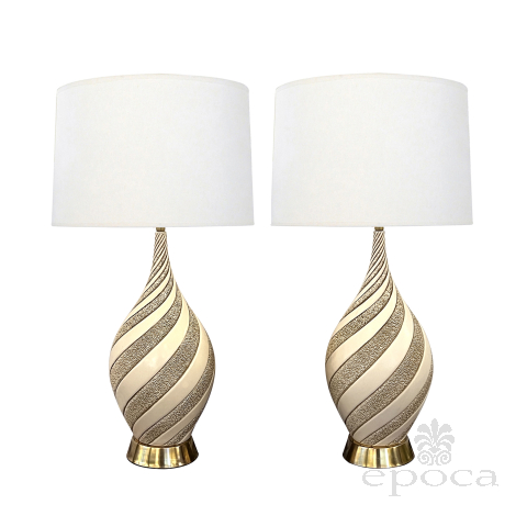 Signed Large Pair 1960s Ivory Glazed Spiral Lamps by Quartite Creative Corp