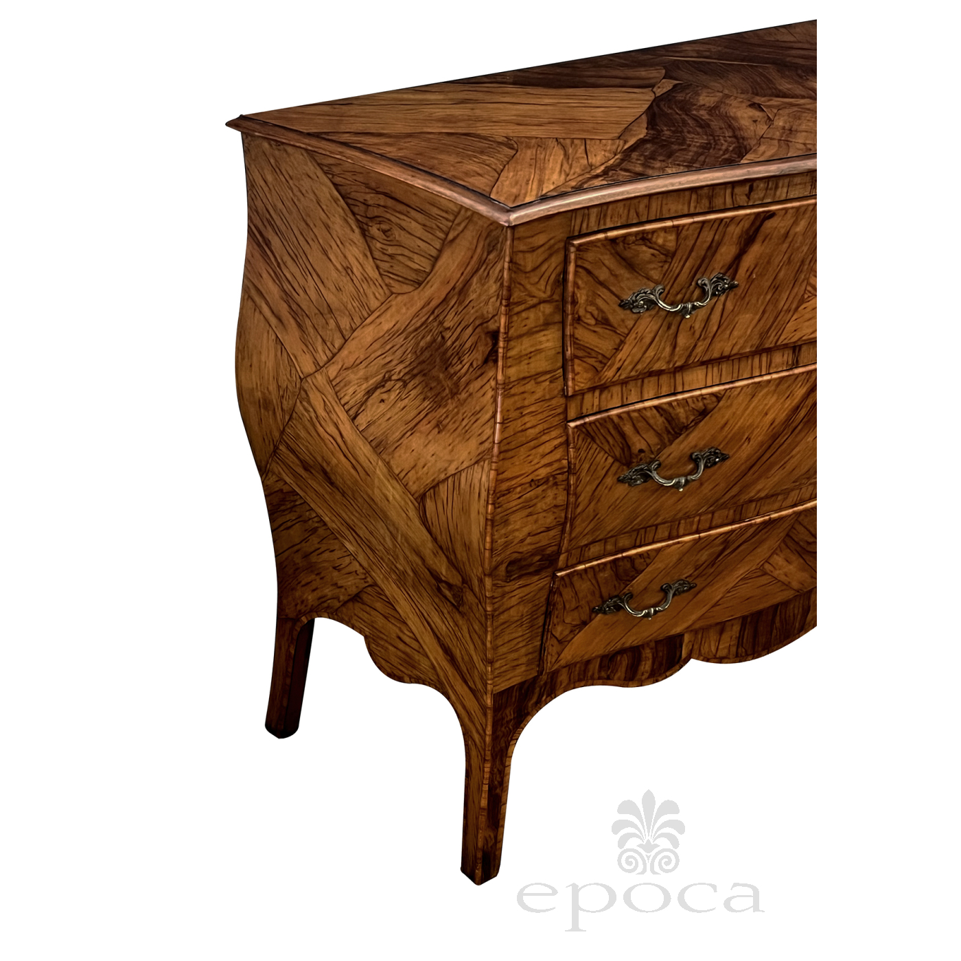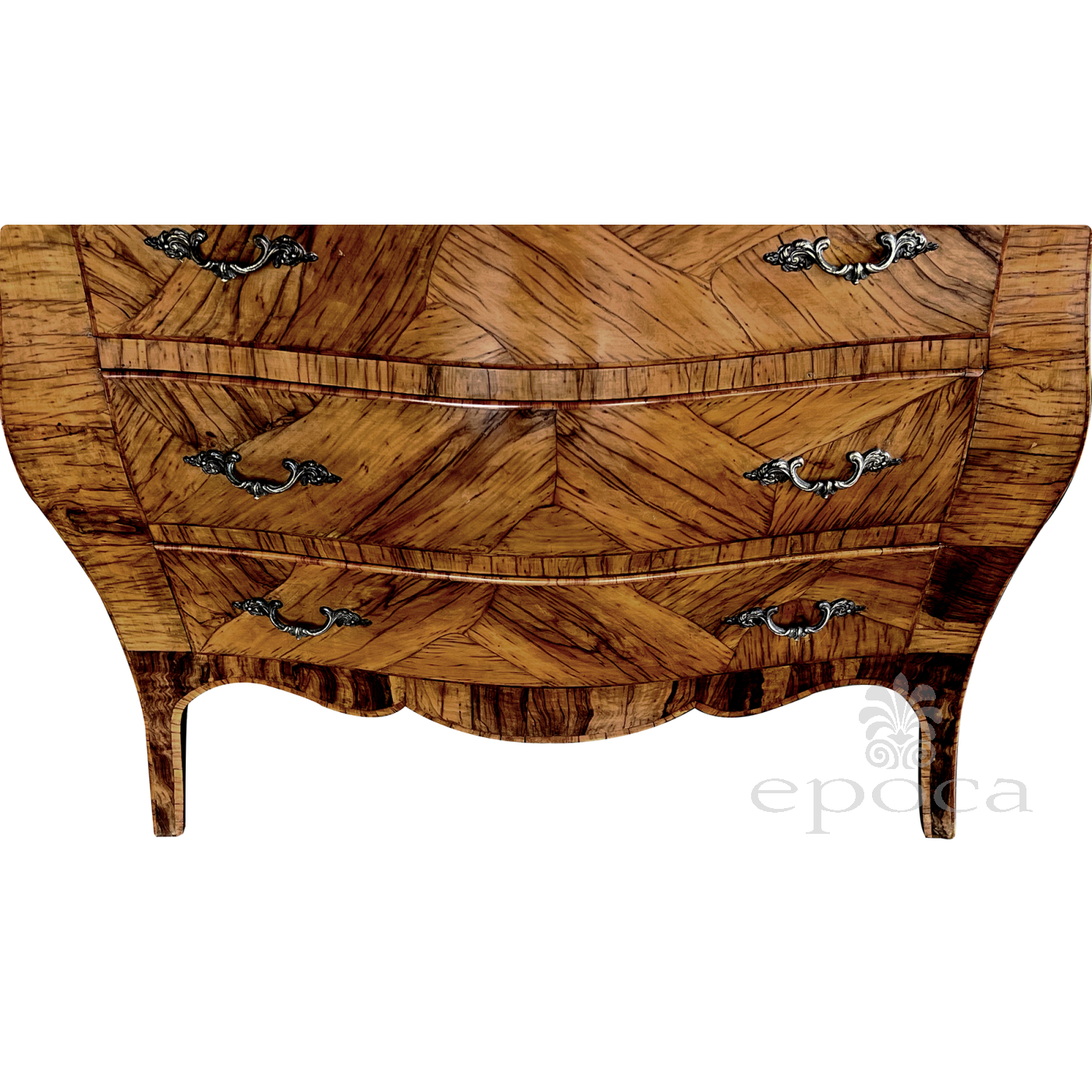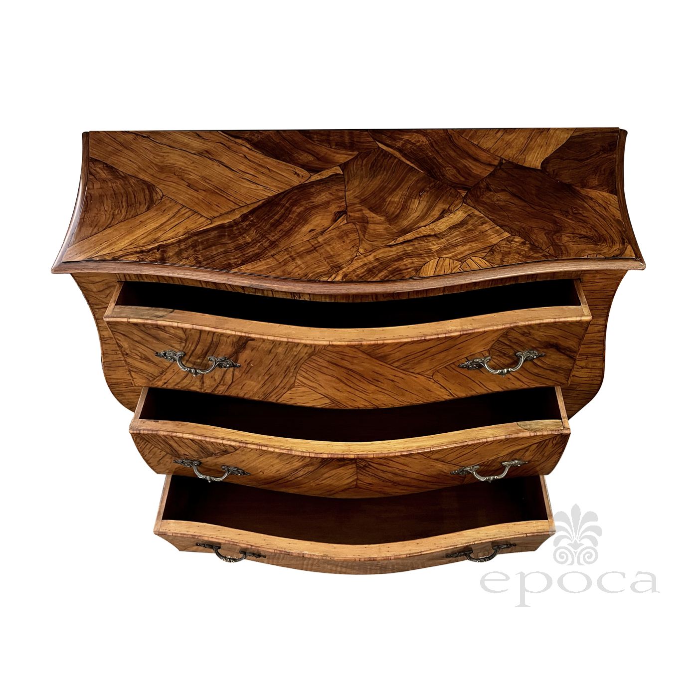 Italian Rococo Style Bombé-form Olivewood Veneer 3-Drawer Chest