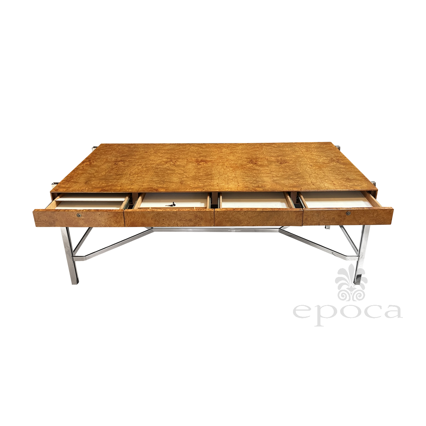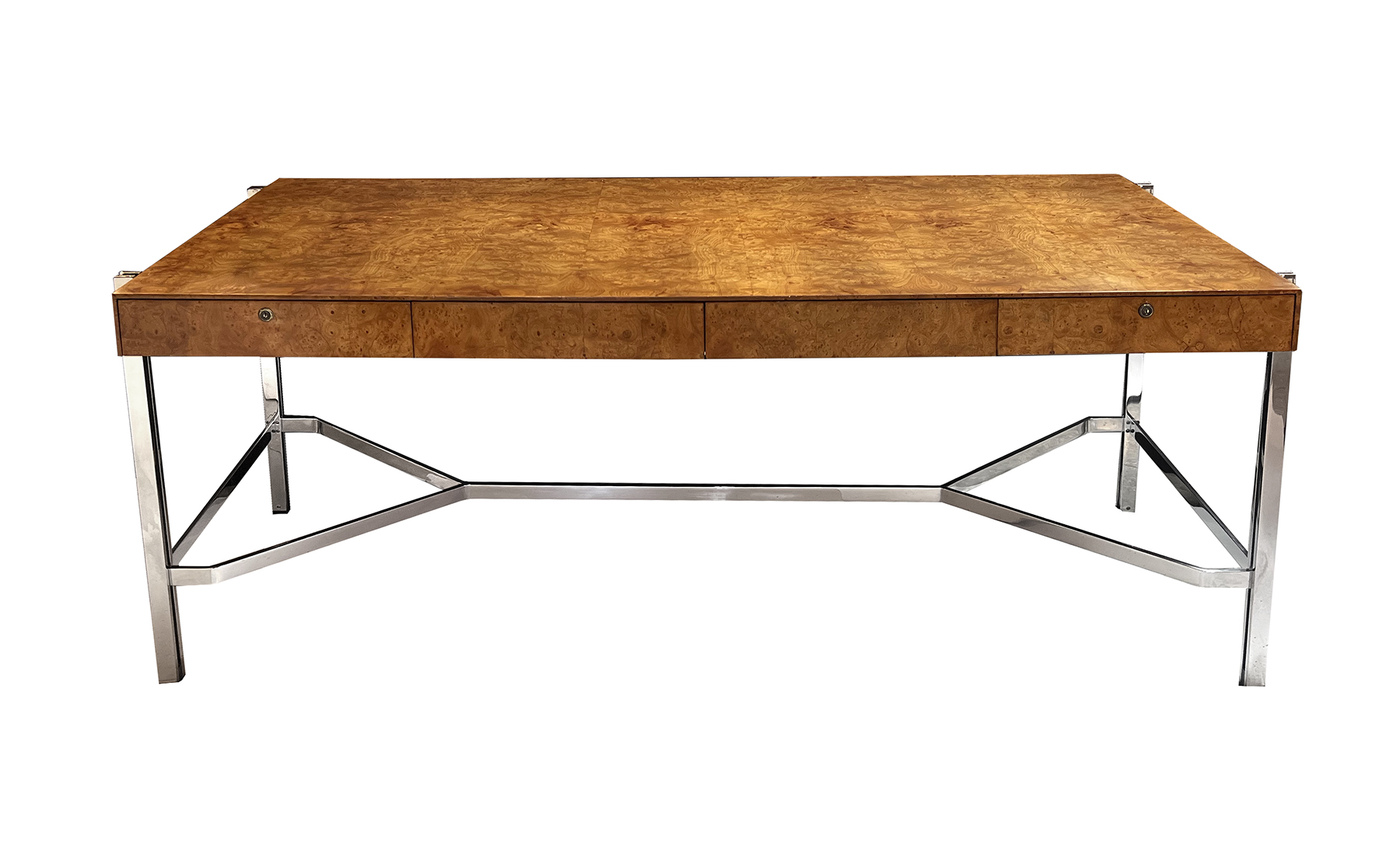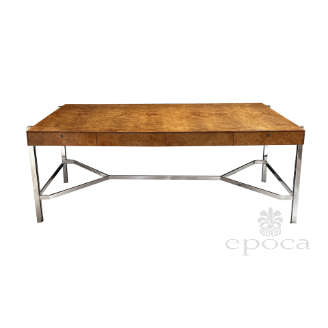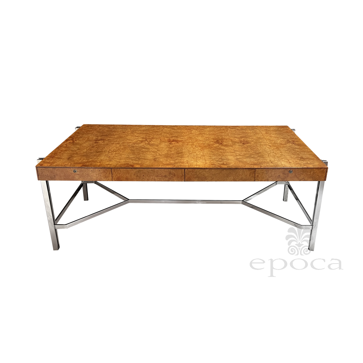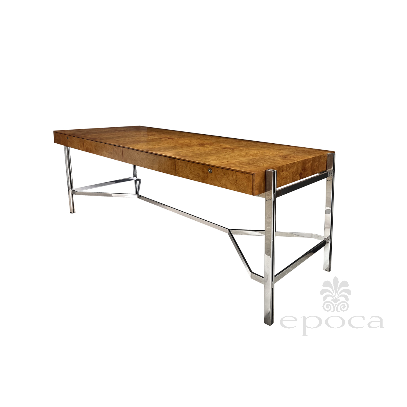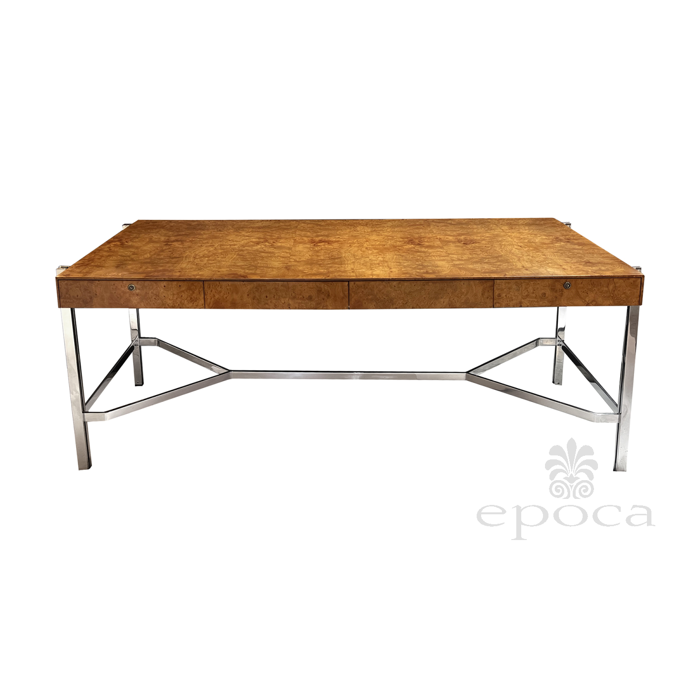 Jack Freidin for Pace Collection Chrome and Burl Veneer 4-Drawer Writing Desk