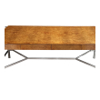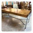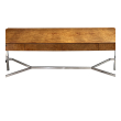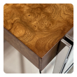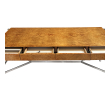 designed by Jack Freidin (American 1930-2004) for the Pace Collection, the rectangular top above an apron fitted with four flush drawers all in a well-figured and warmly patinated burlwood veneer; raised on a polished steel frame; good vintage condition; professionally refinished; minor abrasions and rubbing to metal.