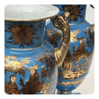Pair of French Paris Porcelain Chinoiserie Gilt and Cerulean Blue Ground Vases