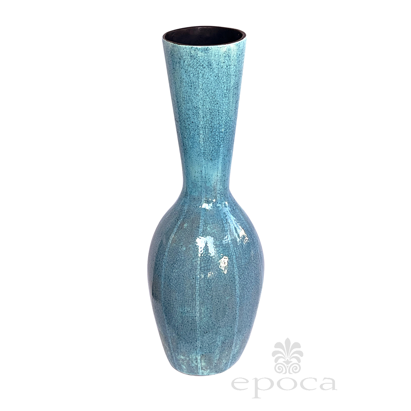 Large Jaru of California Ceramic Vase with Cerulean Blue Crackle Glaze