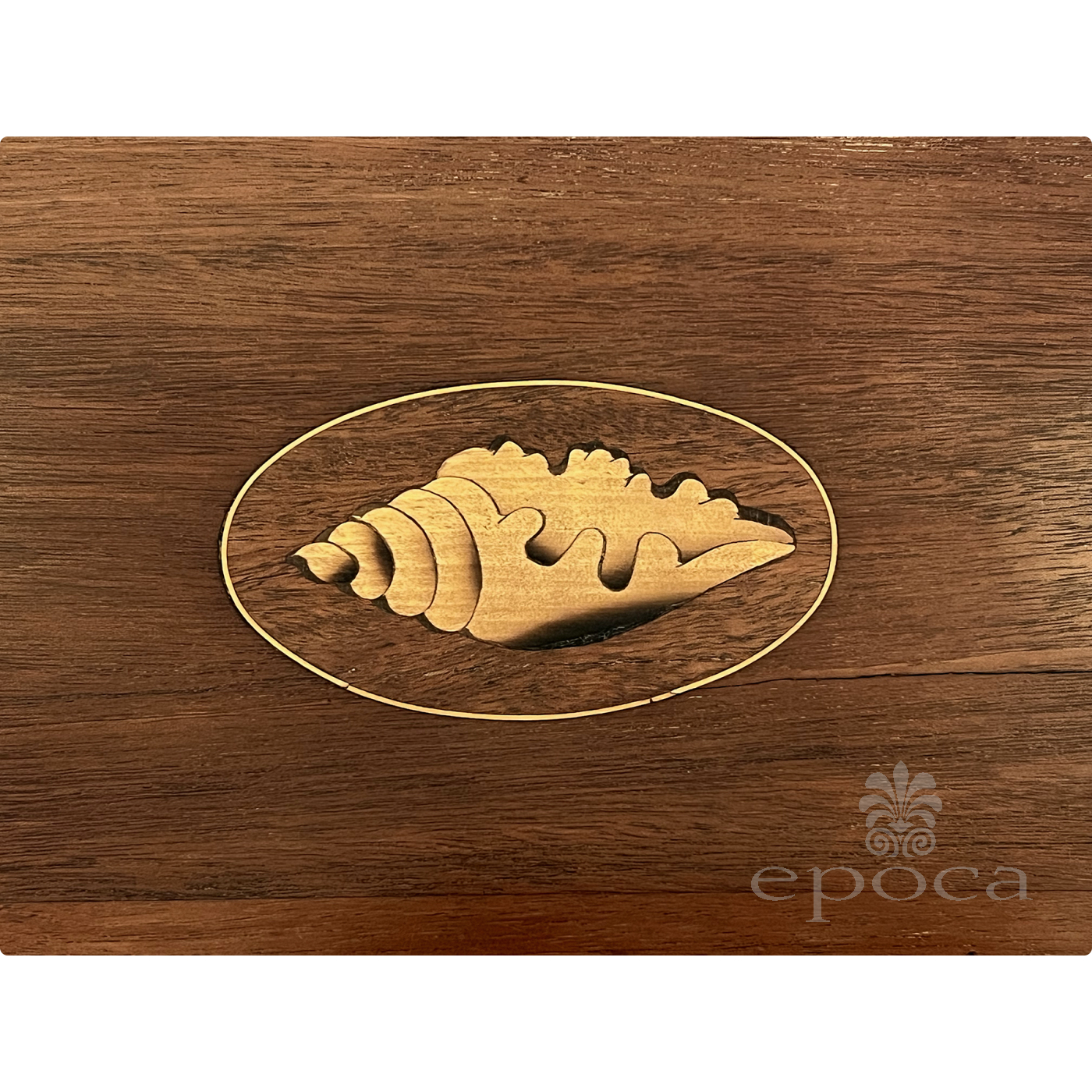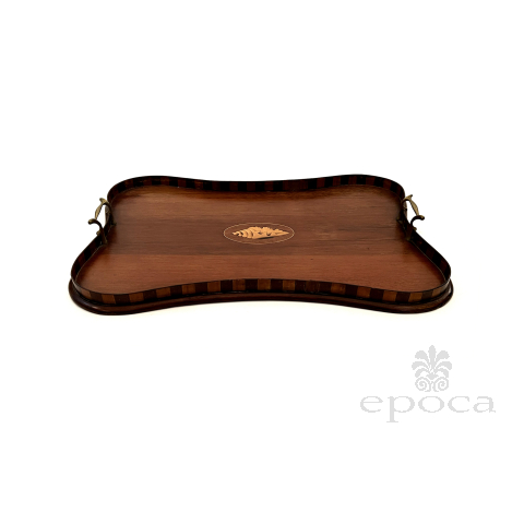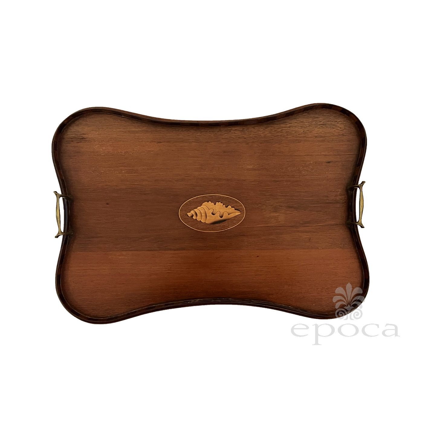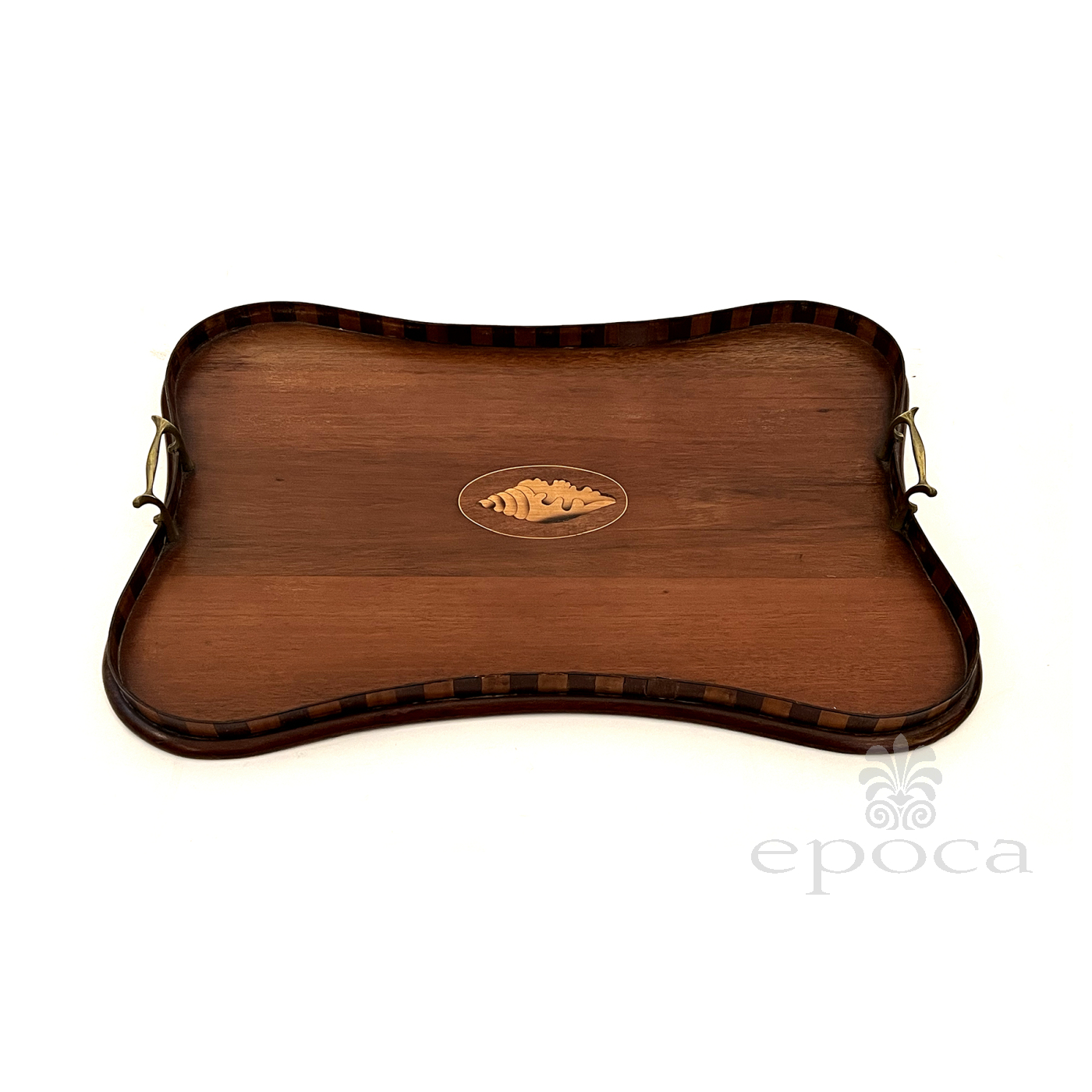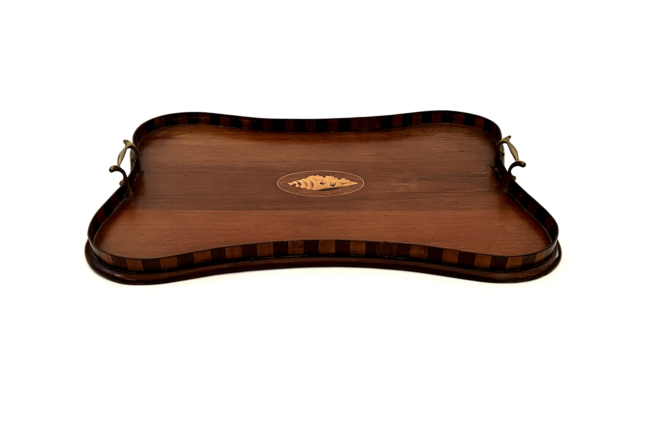 Edwardian Inlaid Mahogany & Satinwood Serving/Butler's Tray with Conch Shell Motif