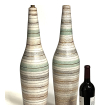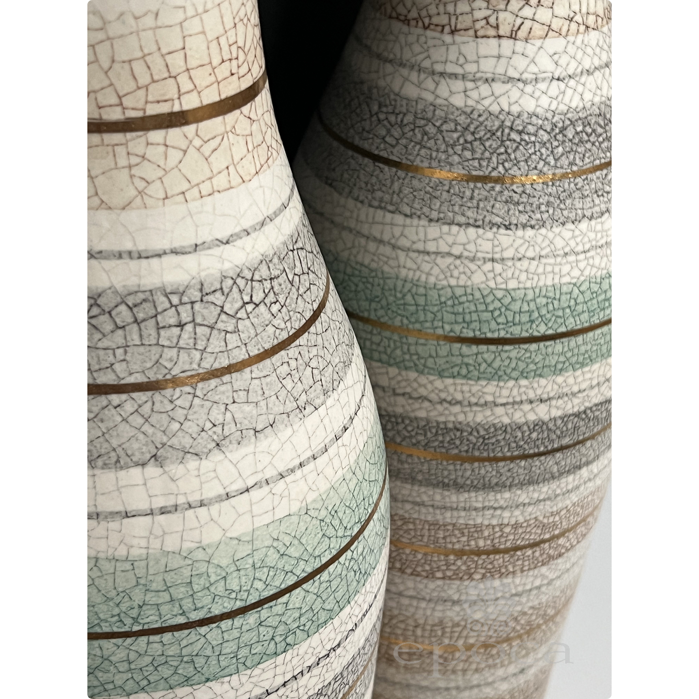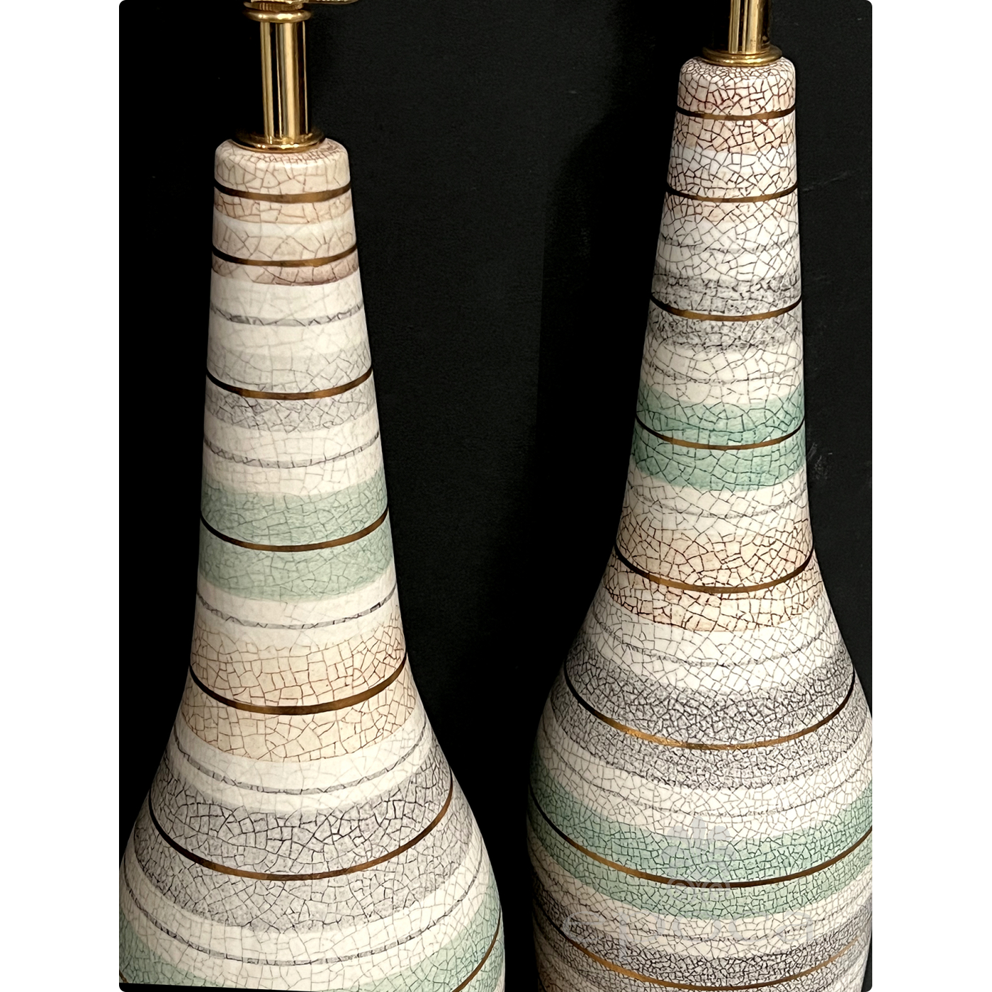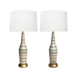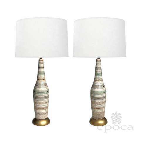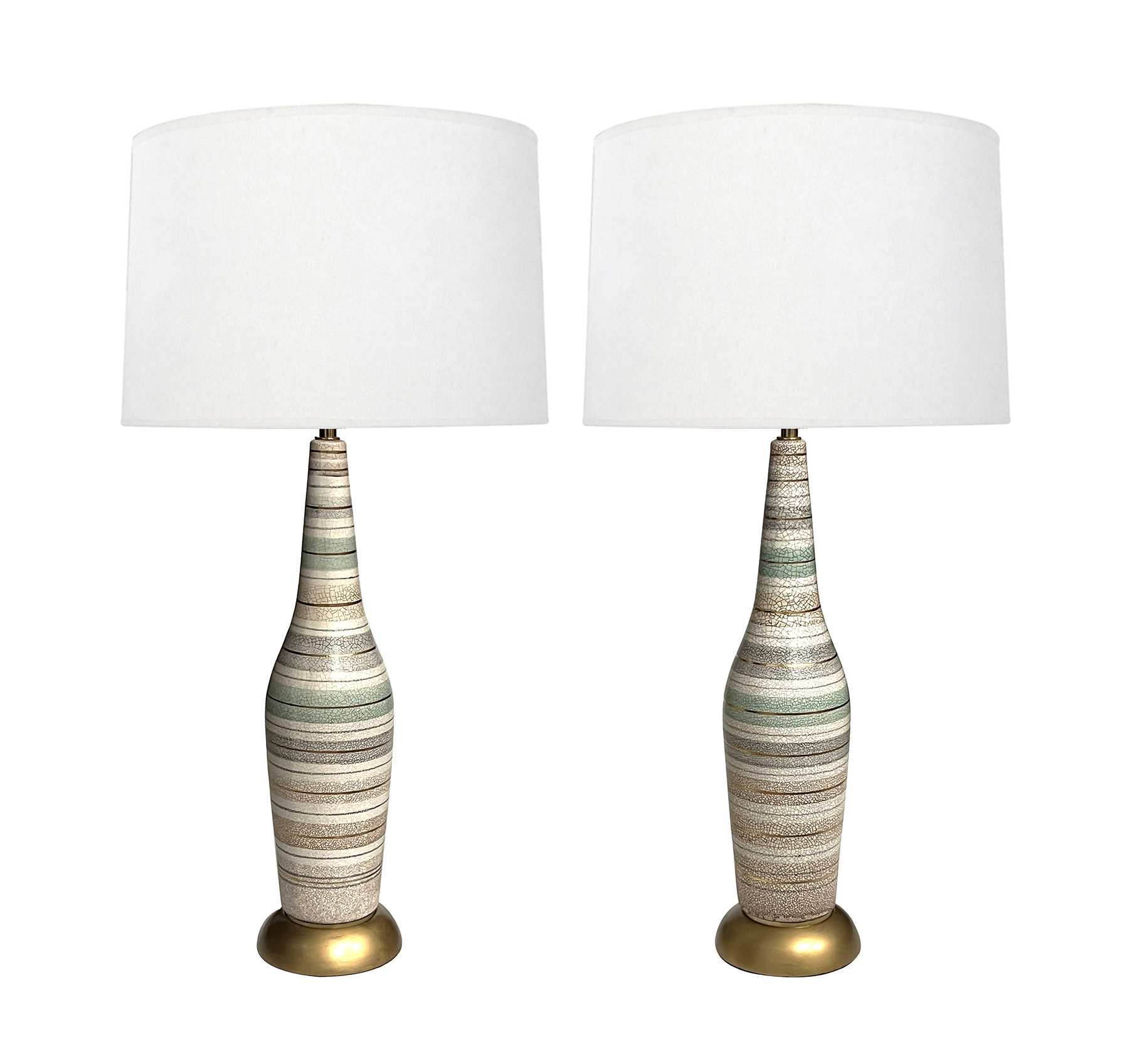 Tall Pair 1960s Bottle-form Striped Ceramic Lamps with Crackle Glaze Finish