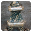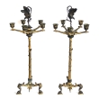 the long neck with bulbous mid-section of carved foliate motifs; raised on a tripartite base on 3 scrolled feet; restored condition.