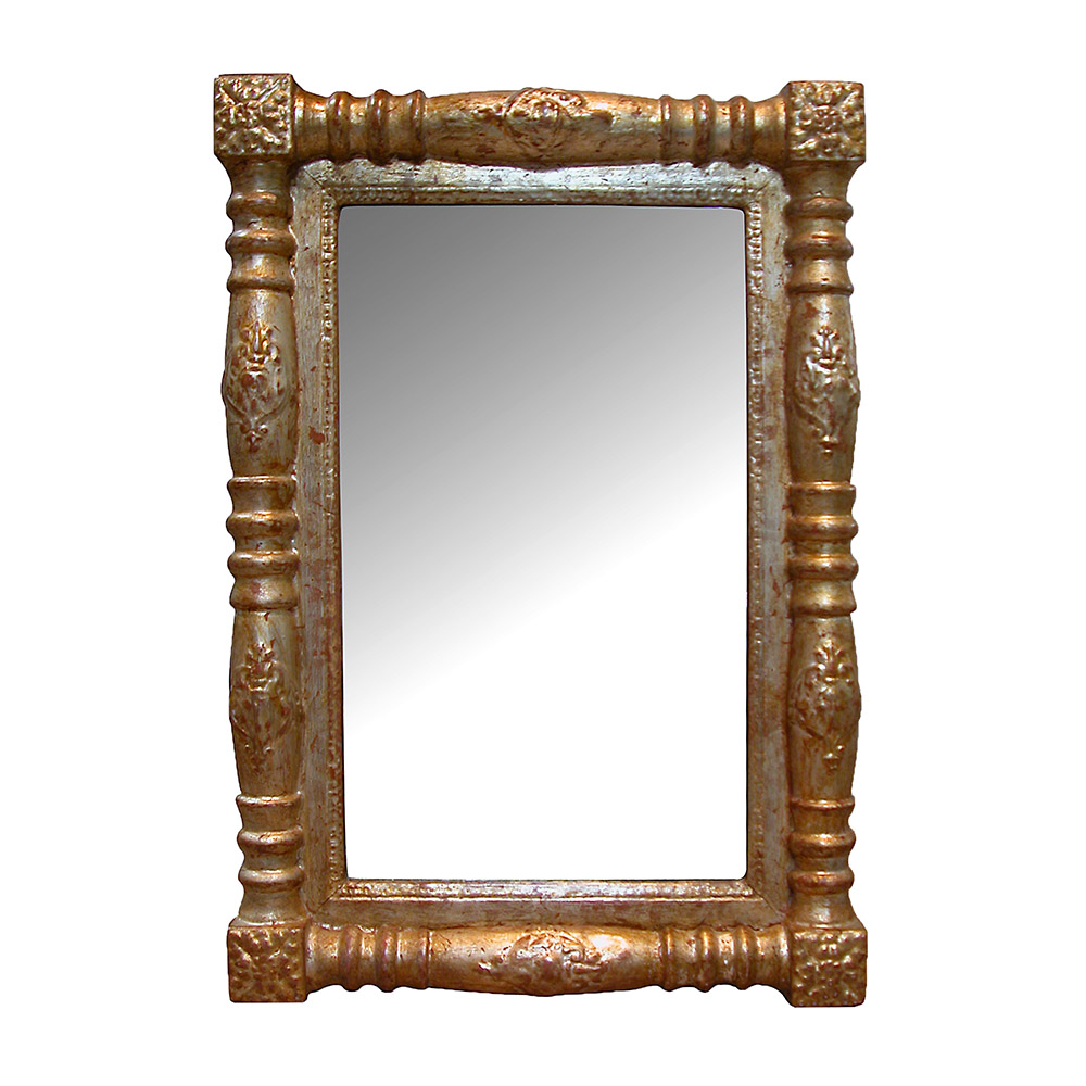 the beveled rectangular plate surrounded by a giltwood frame with half-turnings and carved rosette corners; wear to later gilding; age to plate.