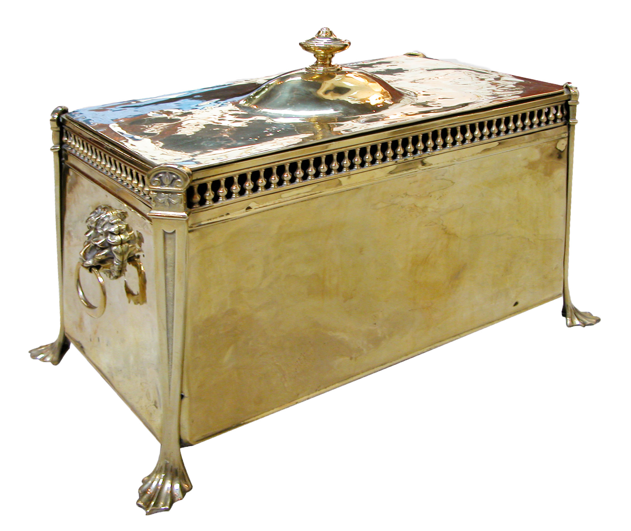a handsome and boldly-scaled english victorian brass rectangular covered coal box with domed lid