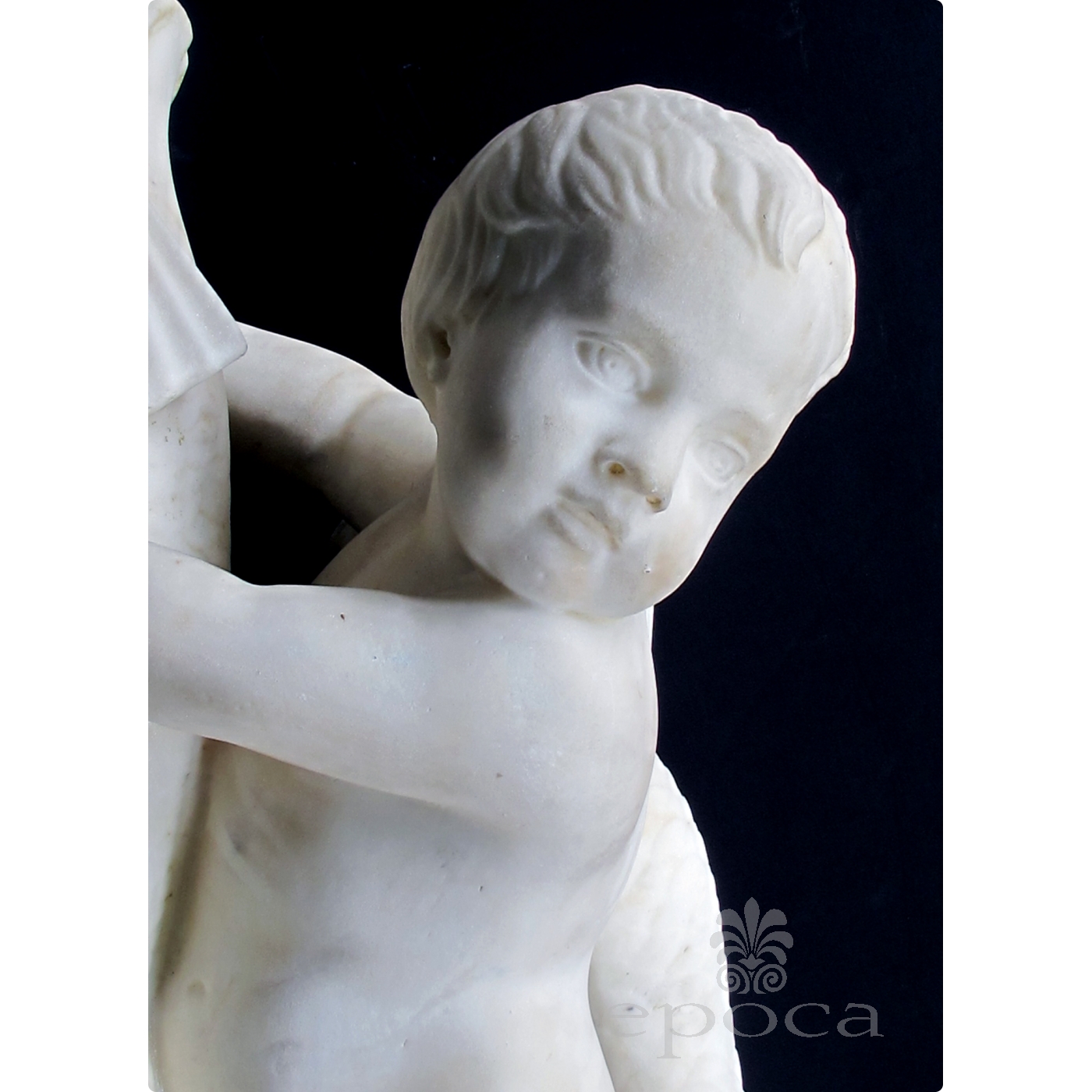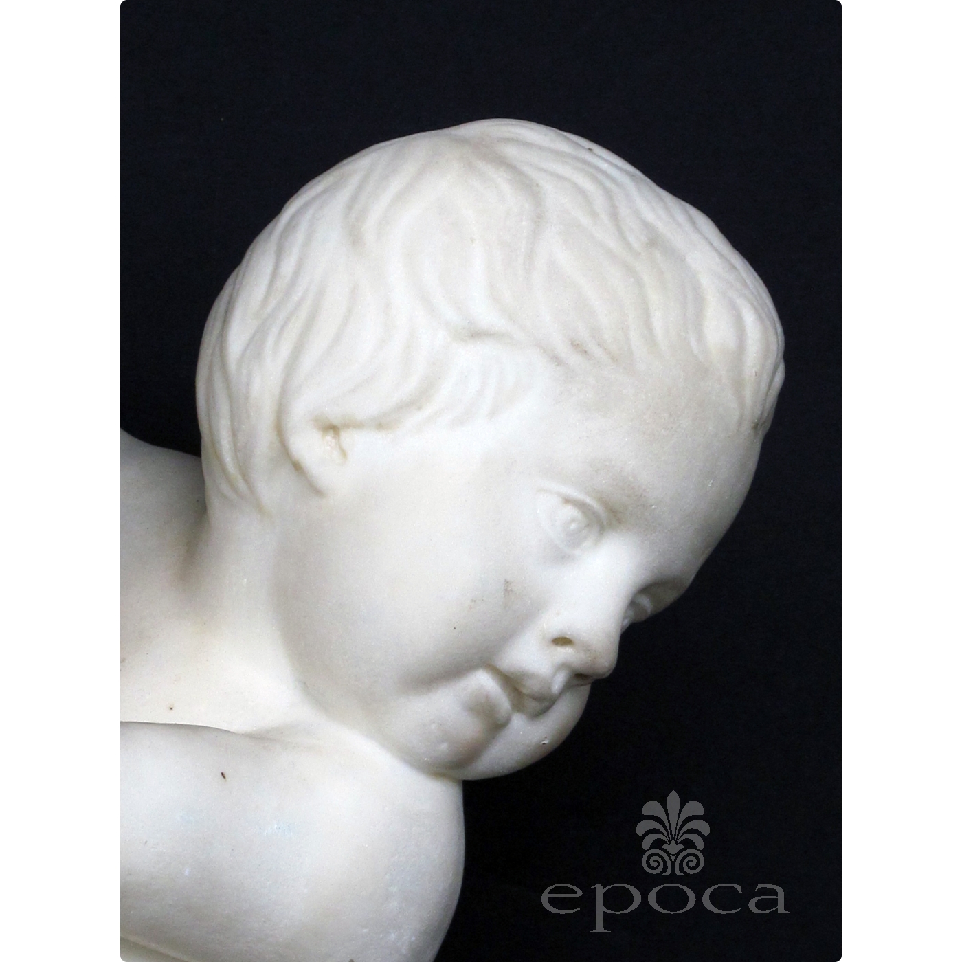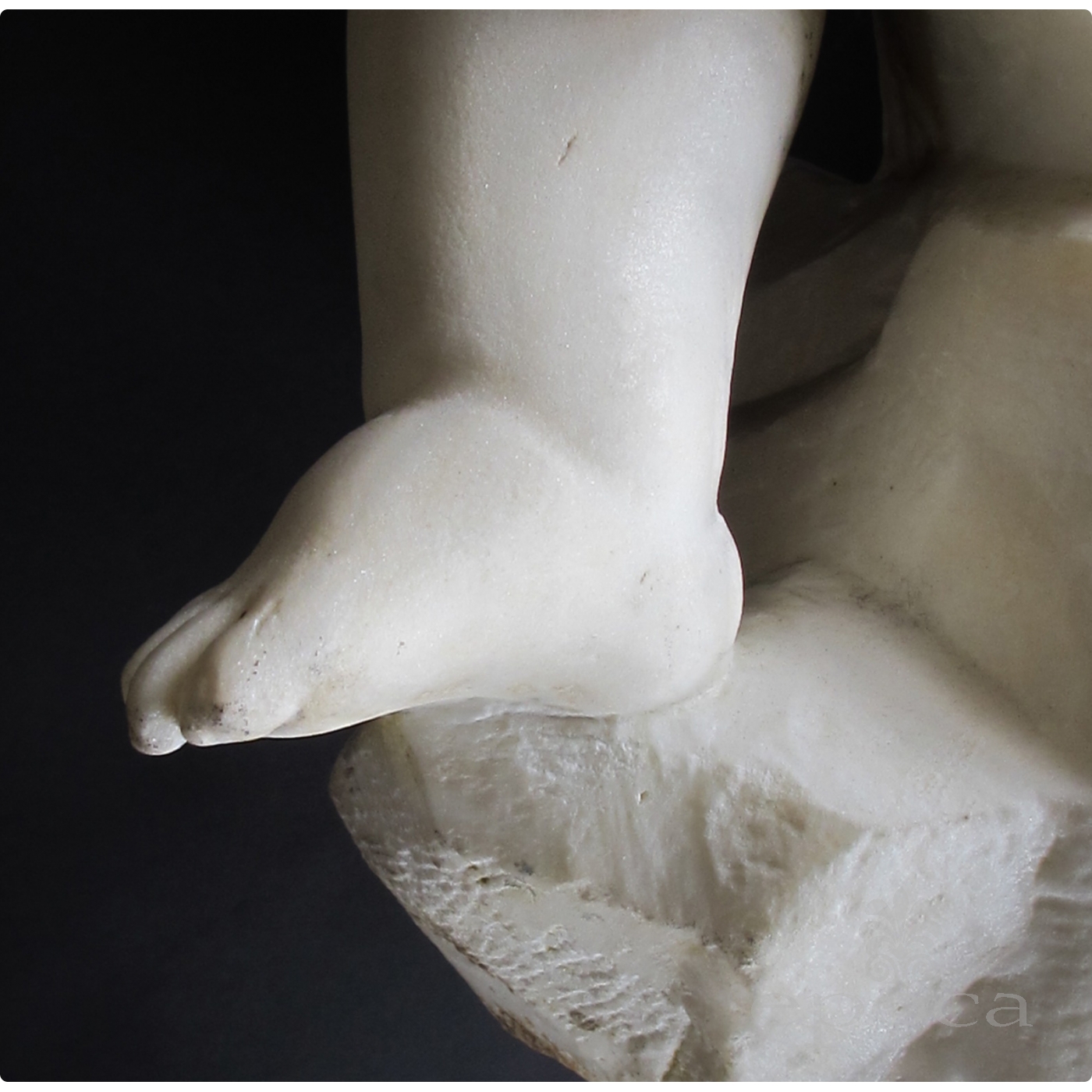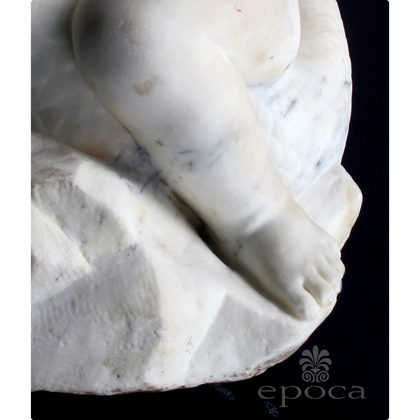 an expressive and well-carved italian rococo revival carrara marble niche fountain of a putti seated on a dolphin