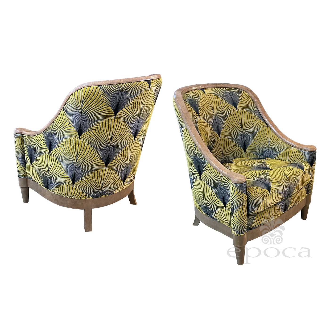 Stylish Pair of Art Deco Style Barrel-back Shagreen Bergeres by Lx Rossi