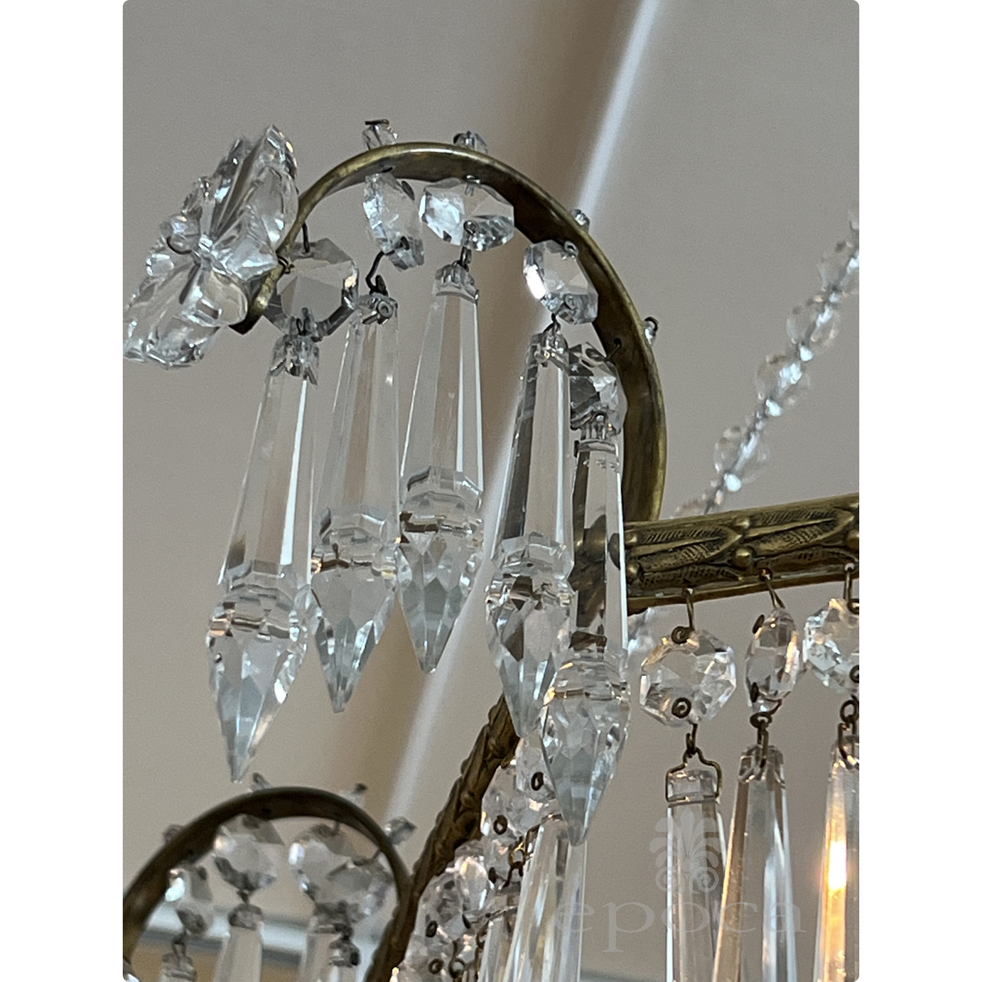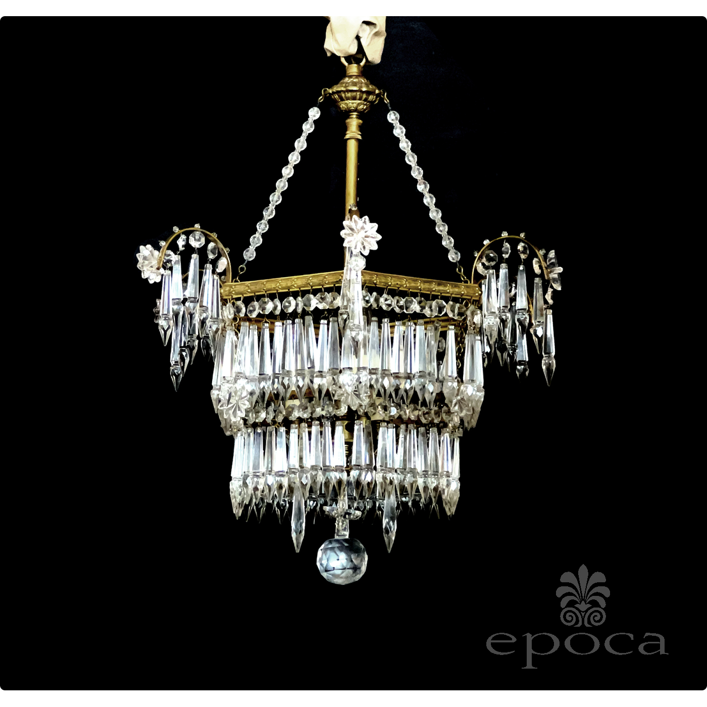 Antique French Empire Style Crystal and Gilt-bronze Hexagonal 3-light Chandelier