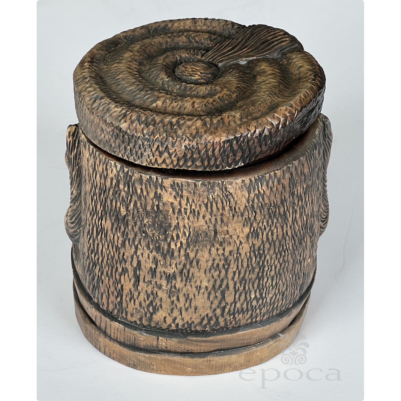 Antique Swiss Black Forest Carved Wood Bear Head Lidded Tobacco Box